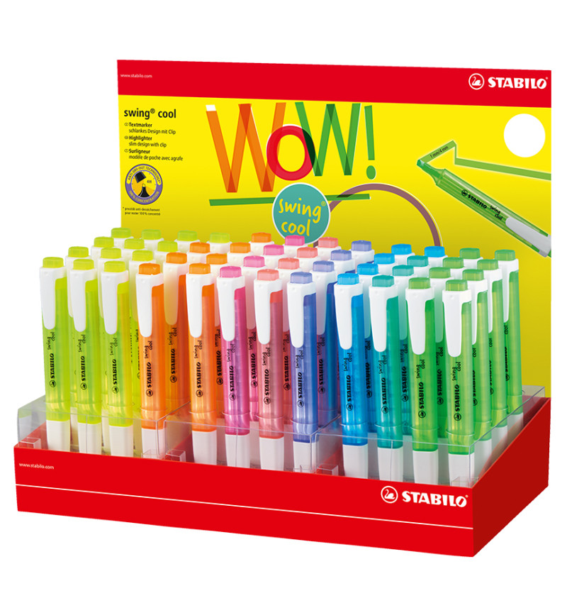 Resaltador, Swing Cool, Punta Biselada 1.0-4.0 mm, Colores Fluo, Exh x 48 Unds. 8 Colores Surtidos