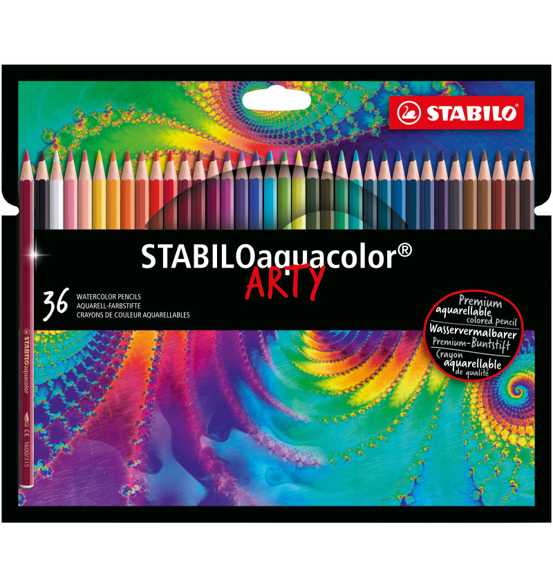 Lápices de Color Acuarelables, Largos, Aquacolor, Cuerpo Hexagonal, Mina 2.8 mm, Estuche ARTY x 36 Colores.