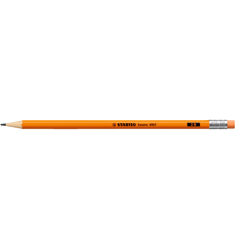 Lápices de Grafito, Swano, HB, Barniz Naranja Neon, Cuerpo Hexagonal, Mina 2.2 mm, c/Borrador, Caja x 12 Unds.