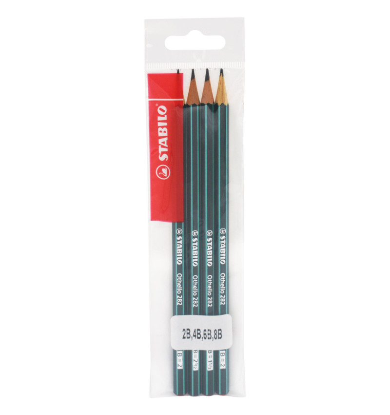 Lápices de Dibujo, Othello, 4 Graduaciones (2B, 4B, 6B, 8B), Cuerpo Hexagonal, Mina 2.2-3.0 mm, Pack x 4 Unds.