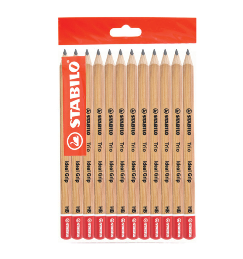 Lápices de Grafito, Trio Jumbo, HB, Barniz Madera, Cuerpo Triangular, Mina 4.2 mm + Sacapuntas, Pack x 12 Unds.