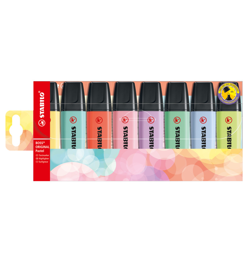 Resaltador, Boss, Punta Biselada 2.0-5.0 mm, Colores Pastel, Estuche x 8 Unds. Colores Surtidos