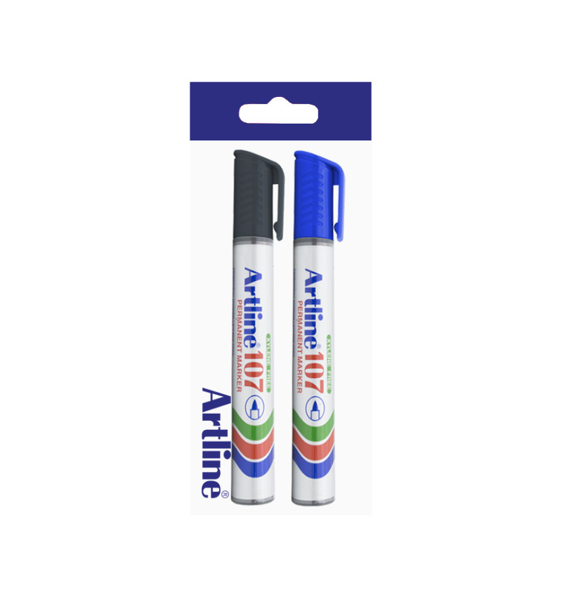 Marc. Permanente, EK107, Punta Redonda, 1.5 mm, Pack x 2, Azul/Negro