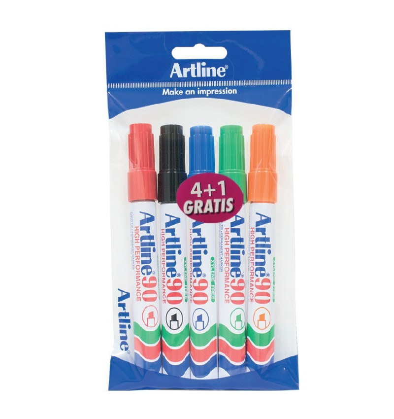 Marc. Permanente, EK90, Punta Biselada, 2.0 - 5.0 mm, Pack x 5, Colores Surtidos
