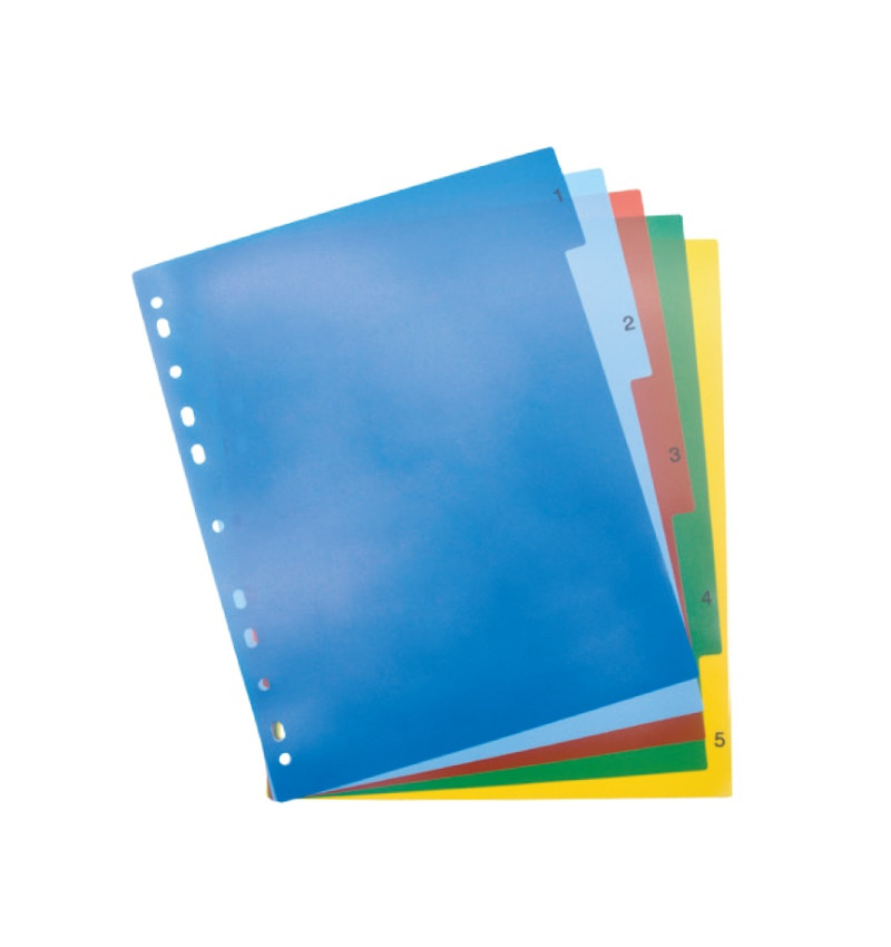 Separadores plásticos, Multicolor, Tam. A4, Números 1 al 5