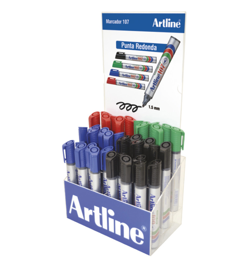 Marc. Permanente, EK107, Punta Redonda, 1.5, Exhibidor x 120 Und., Col. Surtidos
