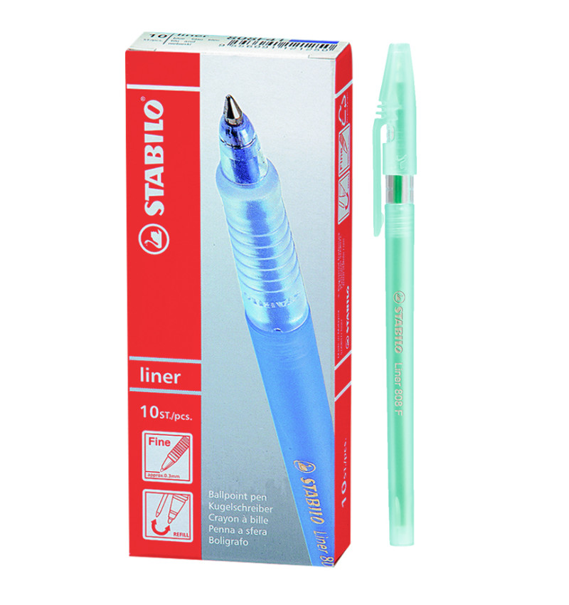 Bolígrafo, Liner 808, Punta Fina 0.38 mm, cuerpo traslúcido, Verde, Caja x 10 Unds.
