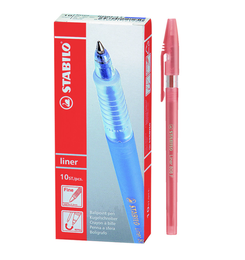 Bolígrafo, Liner 808, Punta Fina 0.38 mm, cuerpo traslúcido, Rojo, Caja x 10 Unds.