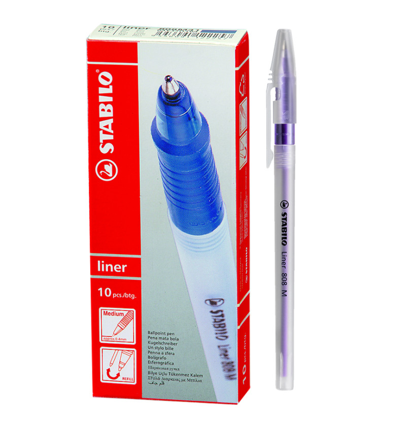 Bolígrafo, Liner 808, Punta Media 0.45 mm, cuerpo traslúcido, Morado, Caja x 10 Unds.