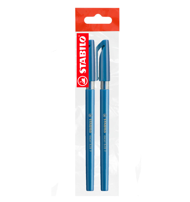 Bolígrafo, Excel 828, Punta Fina 0.38 mm, cuerpo opaco, Azul, Pack x 2 Unds.