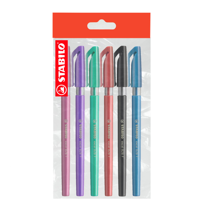 Bolígrafo, Excel 828, Punta Fina 0.38 mm, cuerpo opaco, Pack x 6 Unds. Colores Surtidos