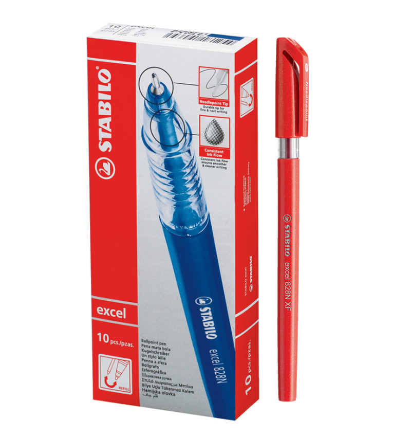 Bolígrafo, Excel 828NXF, Punta Aguja 0.35 mm, cuerpo opaco, Rojo, Caja x 10 Unds.