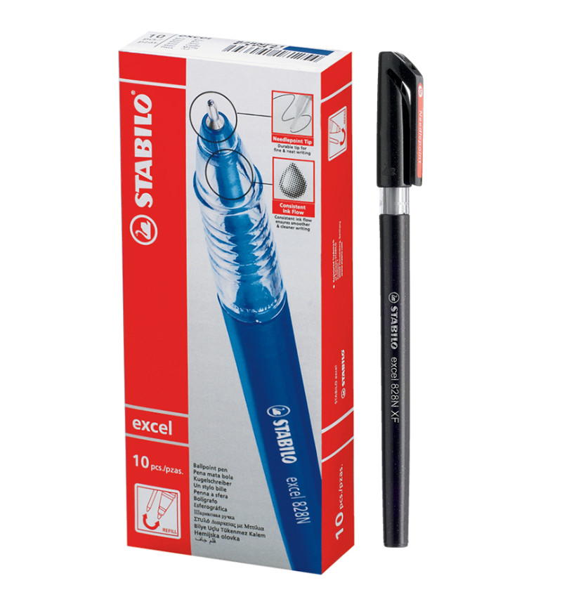 Bolígrafo, Excel 828NXF, Punta Aguja 0.35 mm, cuerpo opaco, Negro, Caja x 10 Unds.
