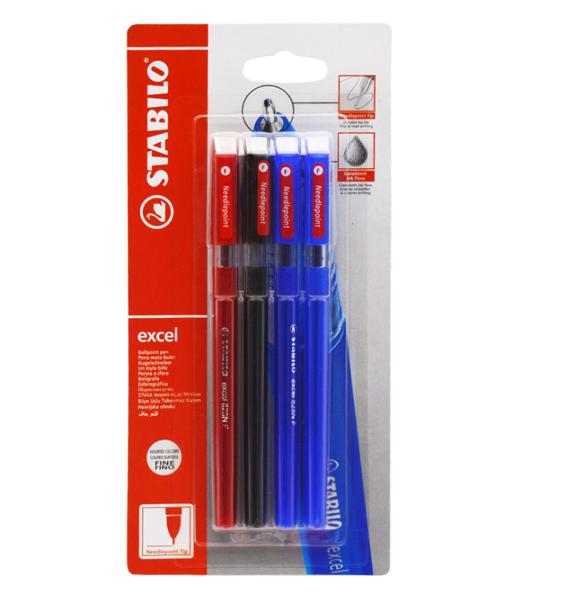 Bolígrafo, Excel 828NF, Punta Aguja 0.38 mm, cuerpo opaco, Blister x 4 Unds., 2x Azul, 1x Negro, 1xRojo.