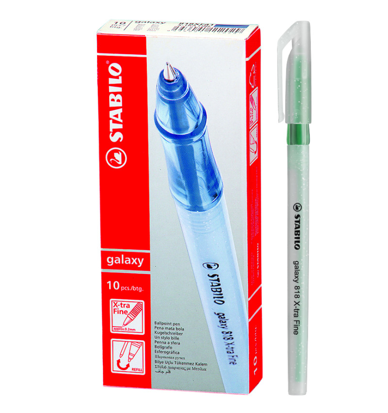 Bolígrafo, Galaxy 818, Punta X-Fina 0.3 mm, cuerpo traslúcido, Verde, Caja x 10 Unds.