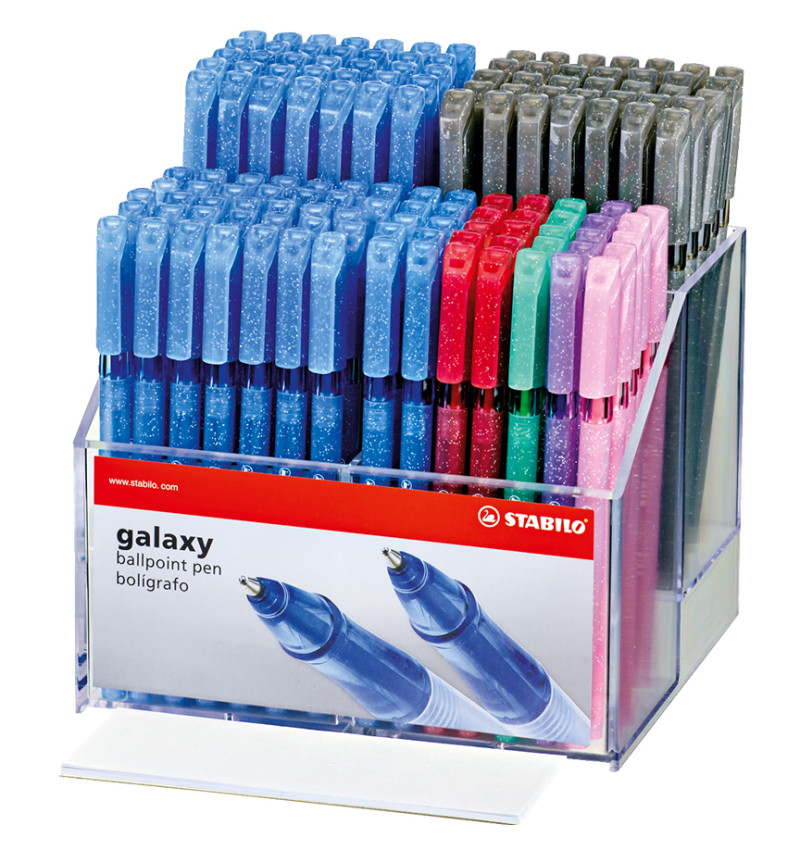 Bolígrafo, Galaxy 818, Punta Fina 0.38 mm, cuerpo traslúcido, Exh x 180 Unds, 6 Colores Surtidos